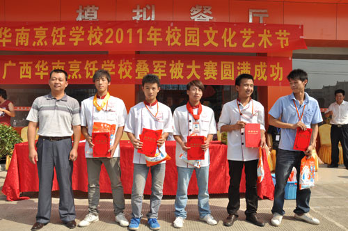 广西华南烹饪学校举行叠军被大赛
